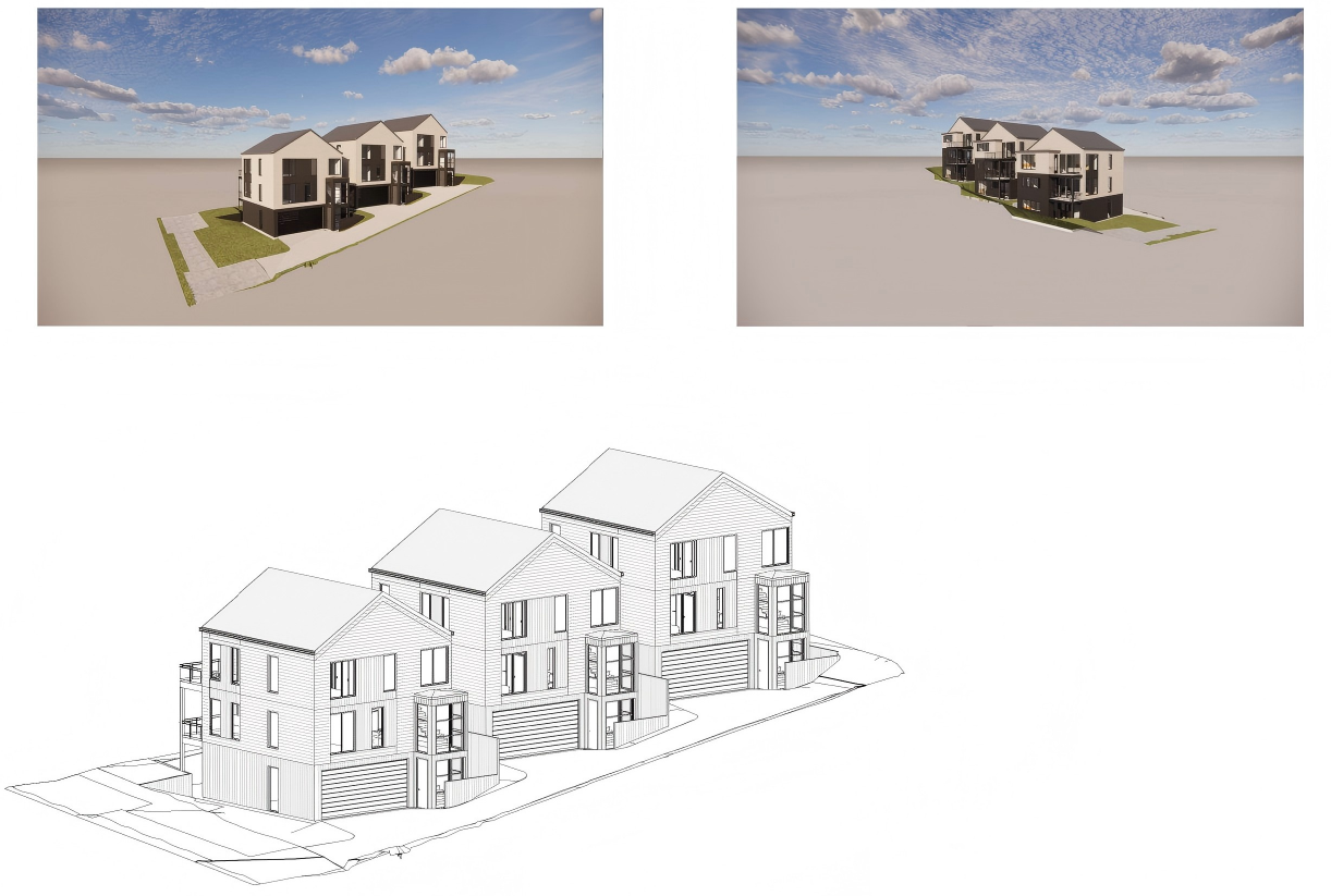 Three three-storey standalone dwellings in plan for Browns Bay, Auckland.